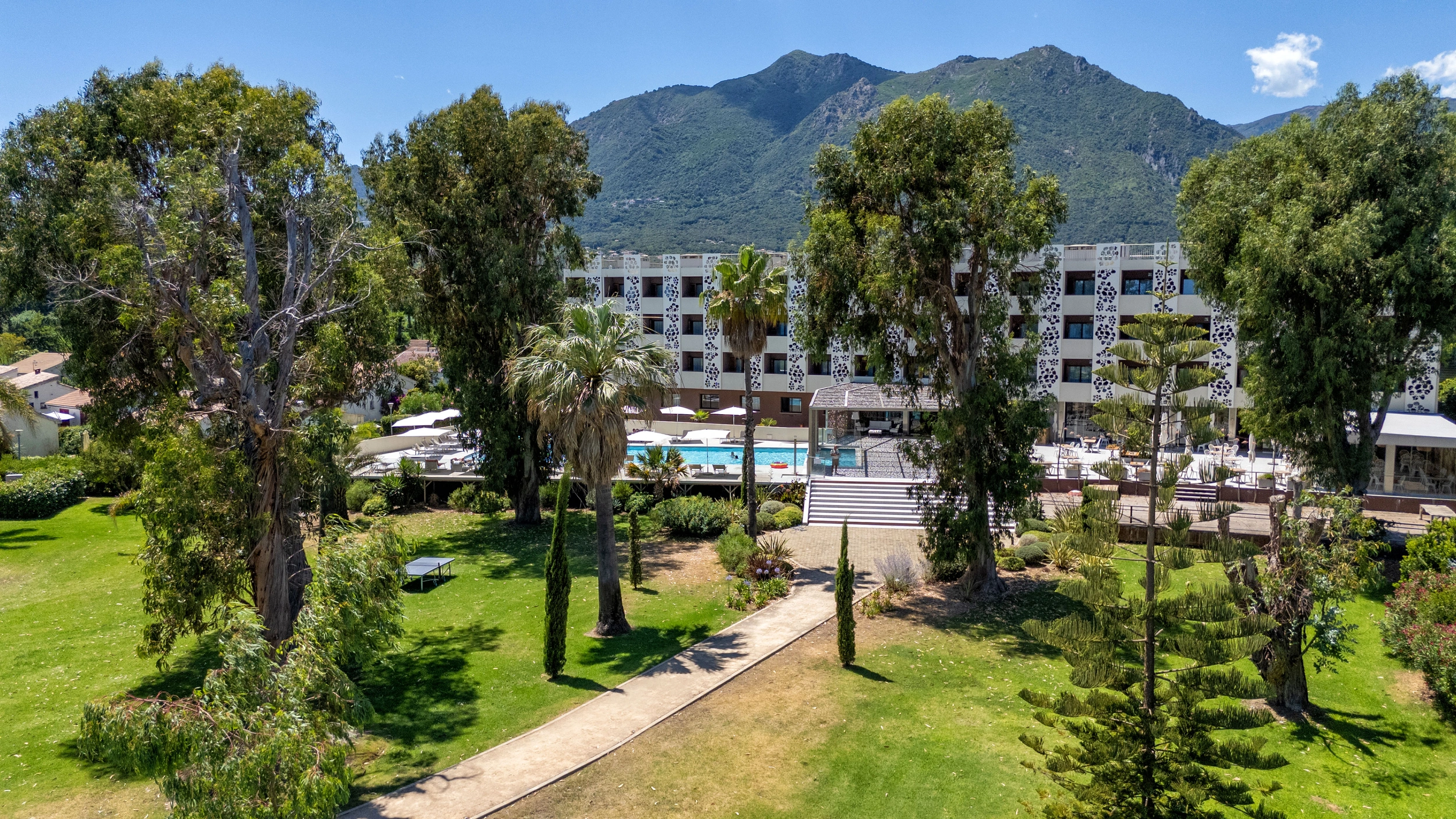 Une pépite d’or dans un écrin de verdure, serait le qualificatif le mieux adapté pour évoquer cet hôtel en bord de mer. Il s’illustre dans un domaine de trois hectares à Moriani-Plage, associant, jardins apaisants, piscine scintillante et restaurant aux saveurs locales. Une invitation sans détour à côtoyer la douceur insulaire dans l’une des rares régions de corse qualifiée encore de sauvage… La Côte Orientale.